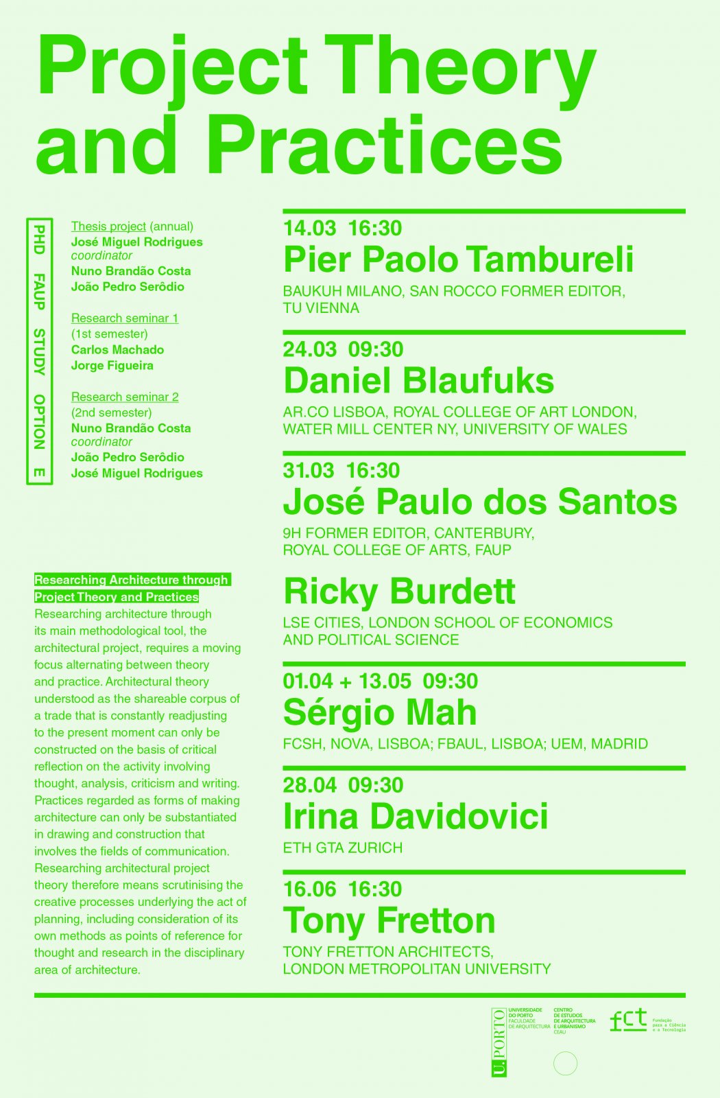 PhD, FAUP Study, Option E – 2023 lectures